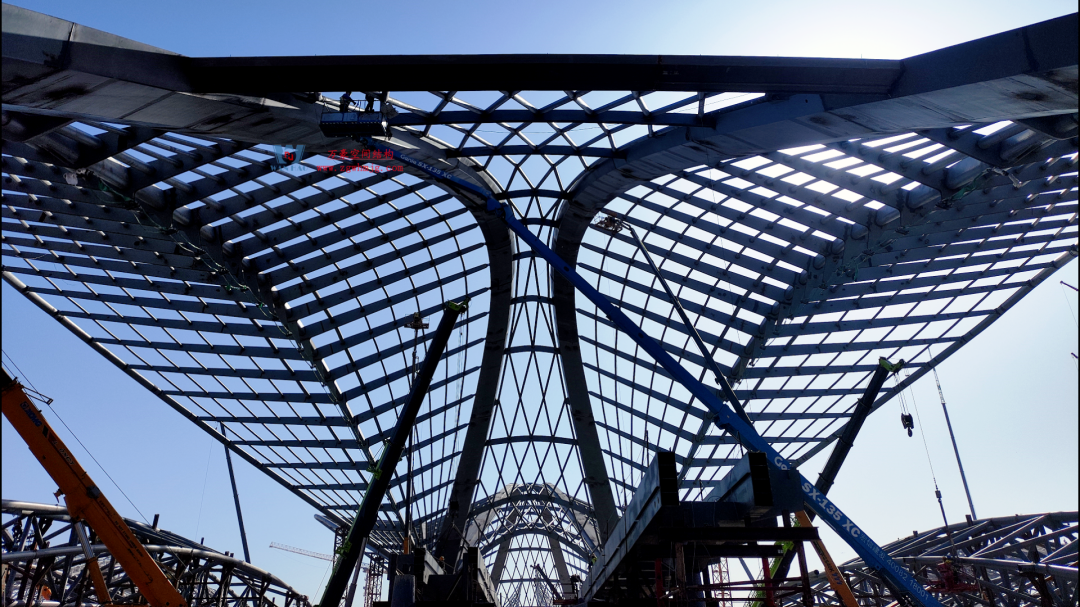 创新采用 “弧形钢管 + 悬挑翼” 屋面桁架